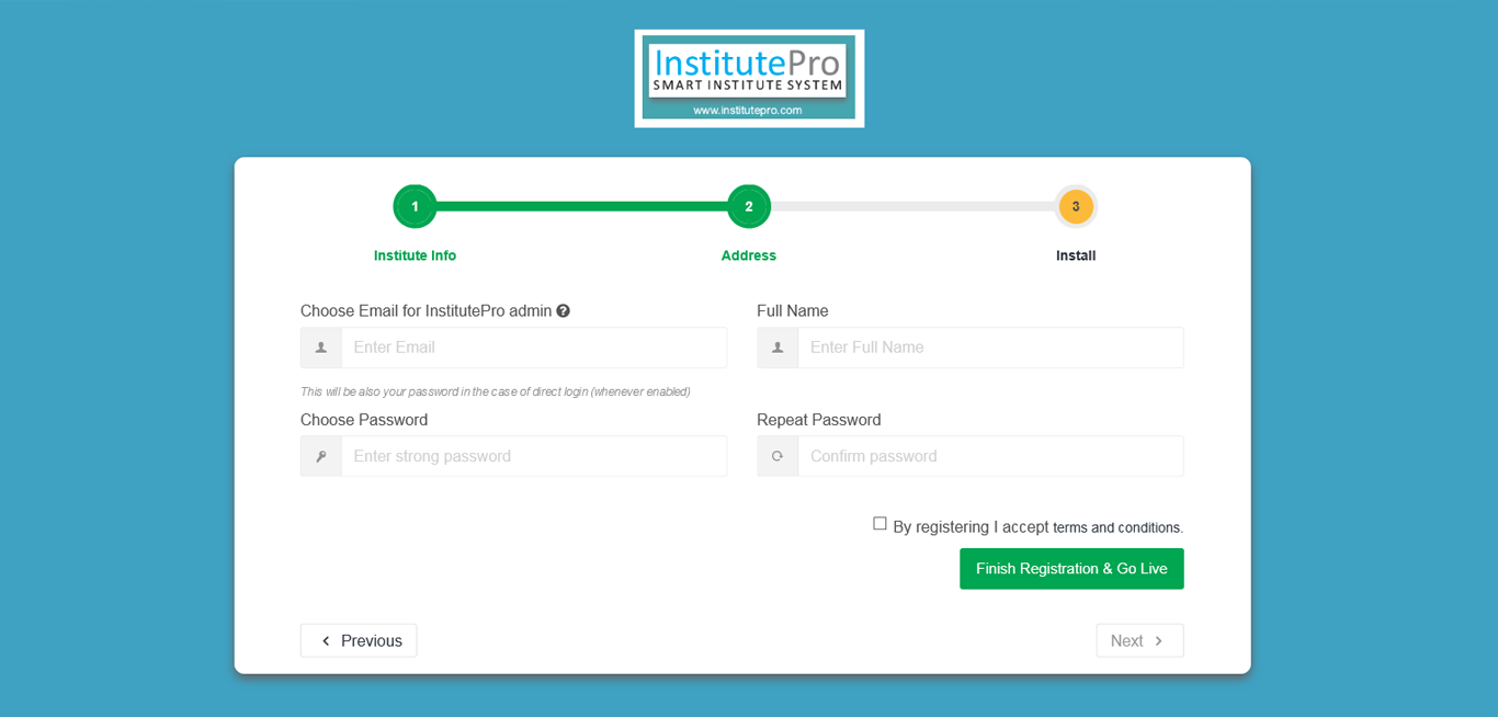 Choose Email for InstitutePro admin(